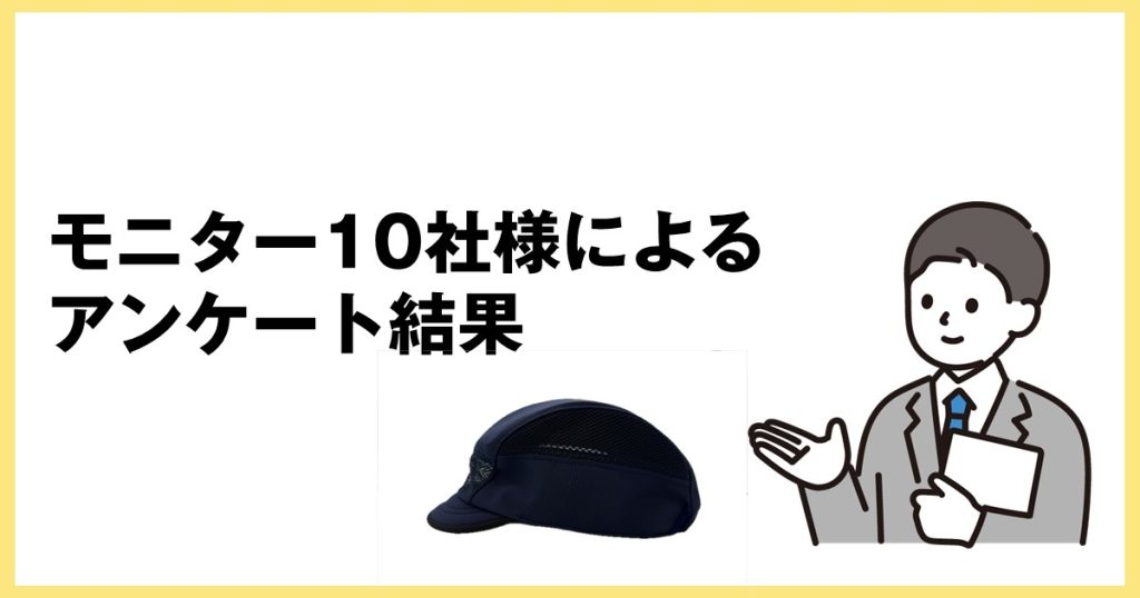 「熱中症対策のため、通気性の良い帽子を探していた、また頭部の保護も行えるとのことでモニターに参加した」