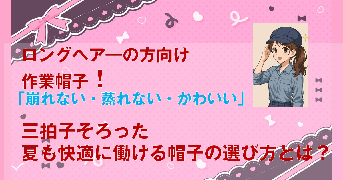 今回は、髪が長い女性のお客様からいただいたリアルな声をもとに、「崩れない」「蒸れない」「かわいい」という3つの観点から、夏にぴったりな作業帽子をご紹介させていただきます。